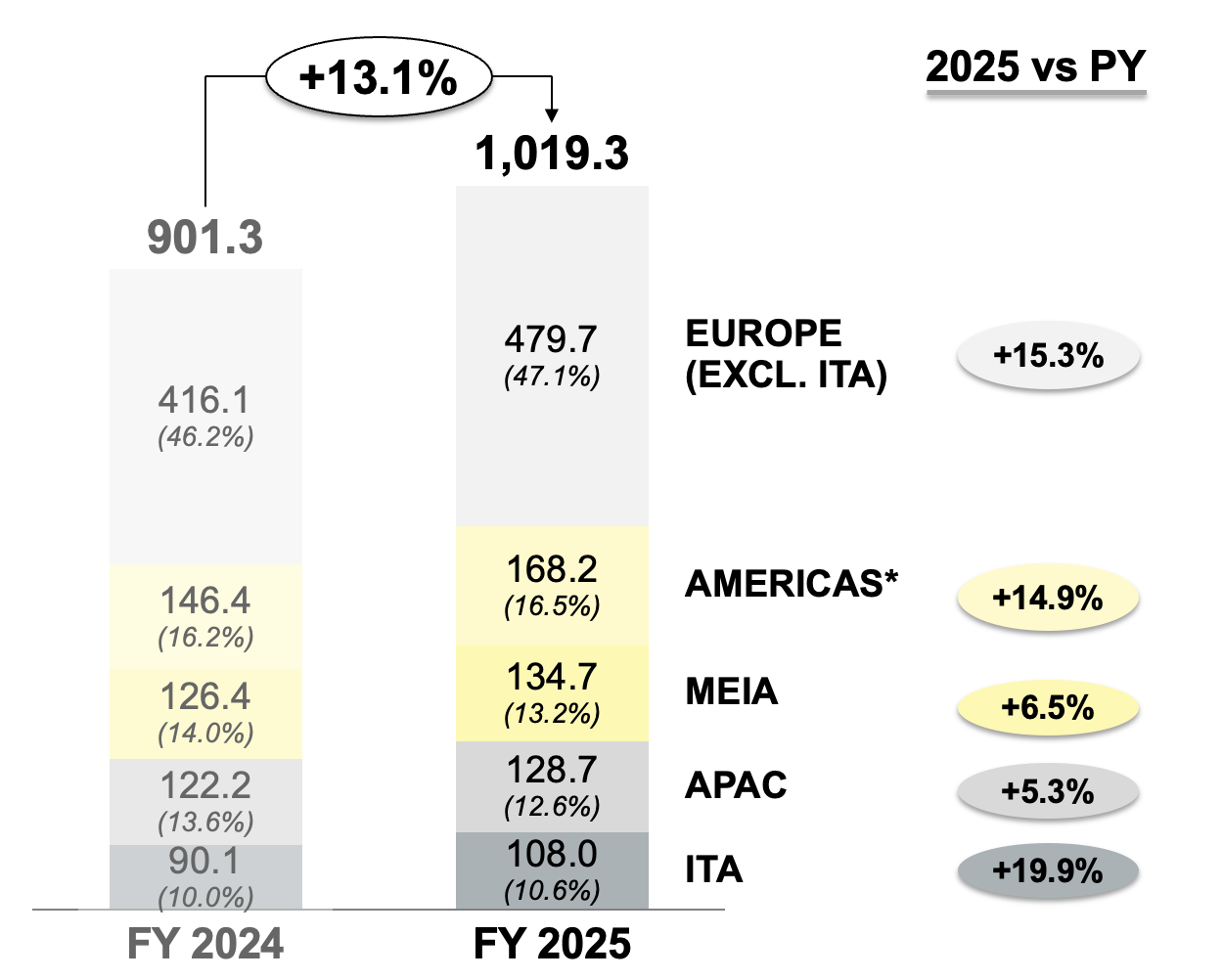 L’anno si è chiuso con il nuovo record di ricavi pari a Euro 901 milioni (+11,5% rispetto al 2023 o +12% a cambi costanti). La crescita è a doppia cifra sia in ambito commercial (+11,6%) che, ancora più impressionante, in quello consumer (+11,3%). Il 2024 si confronta peraltro con un 2023 che aveva registrato il nuovo record di fatturato per il Gruppo.